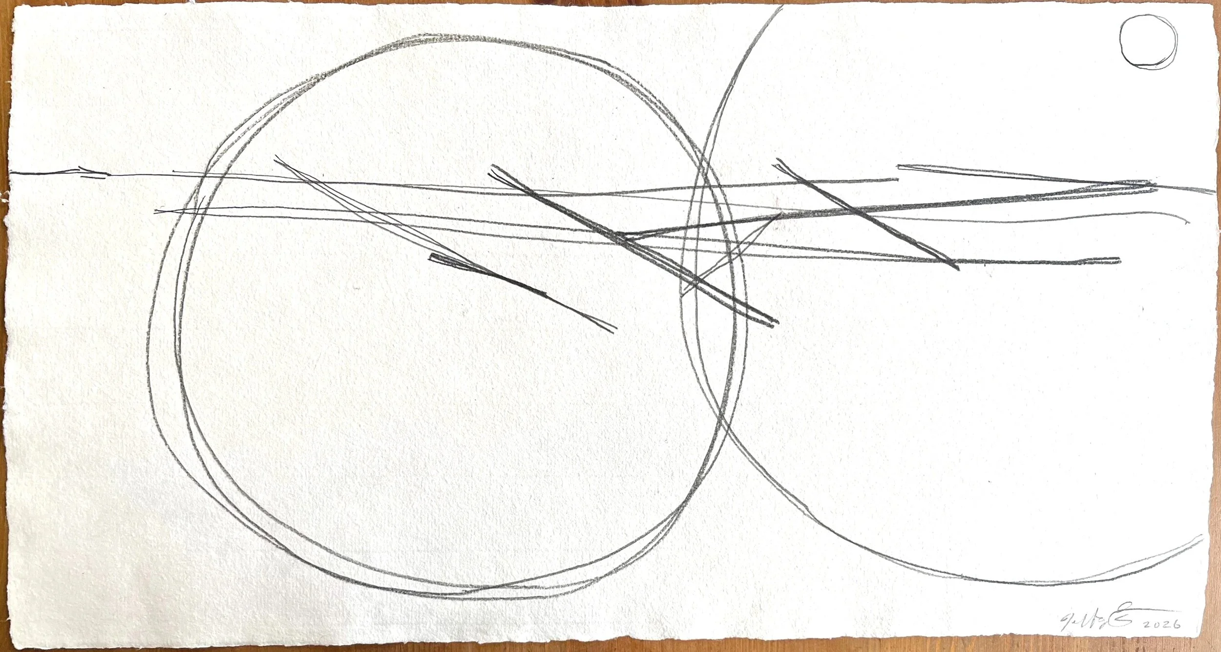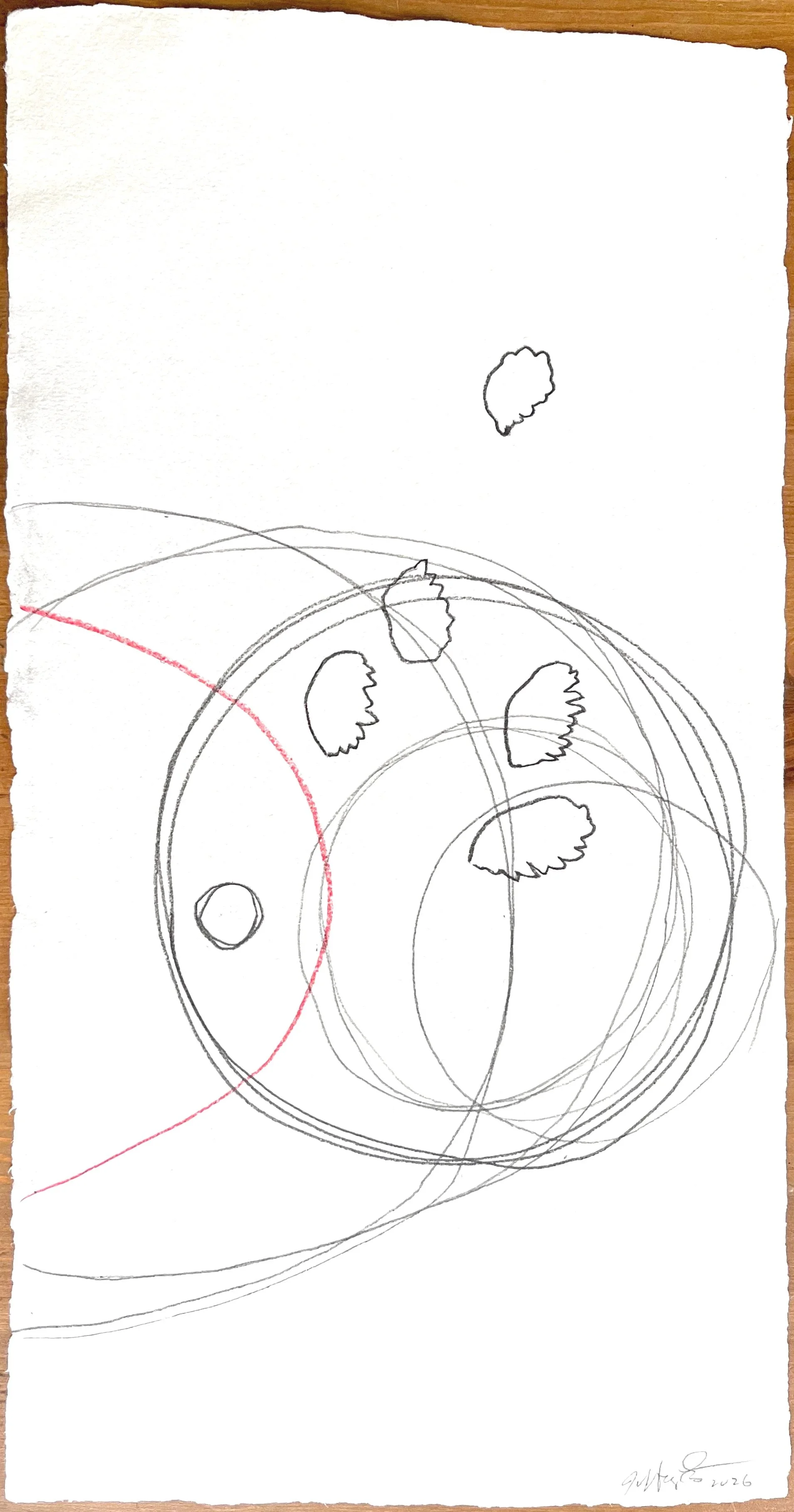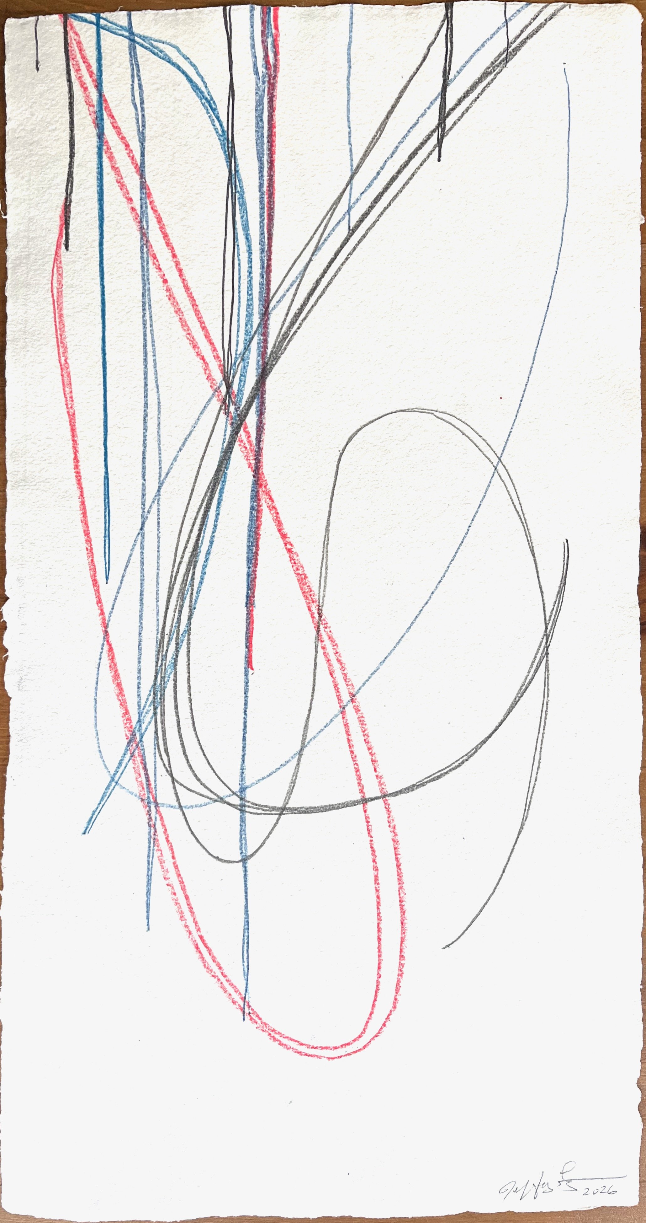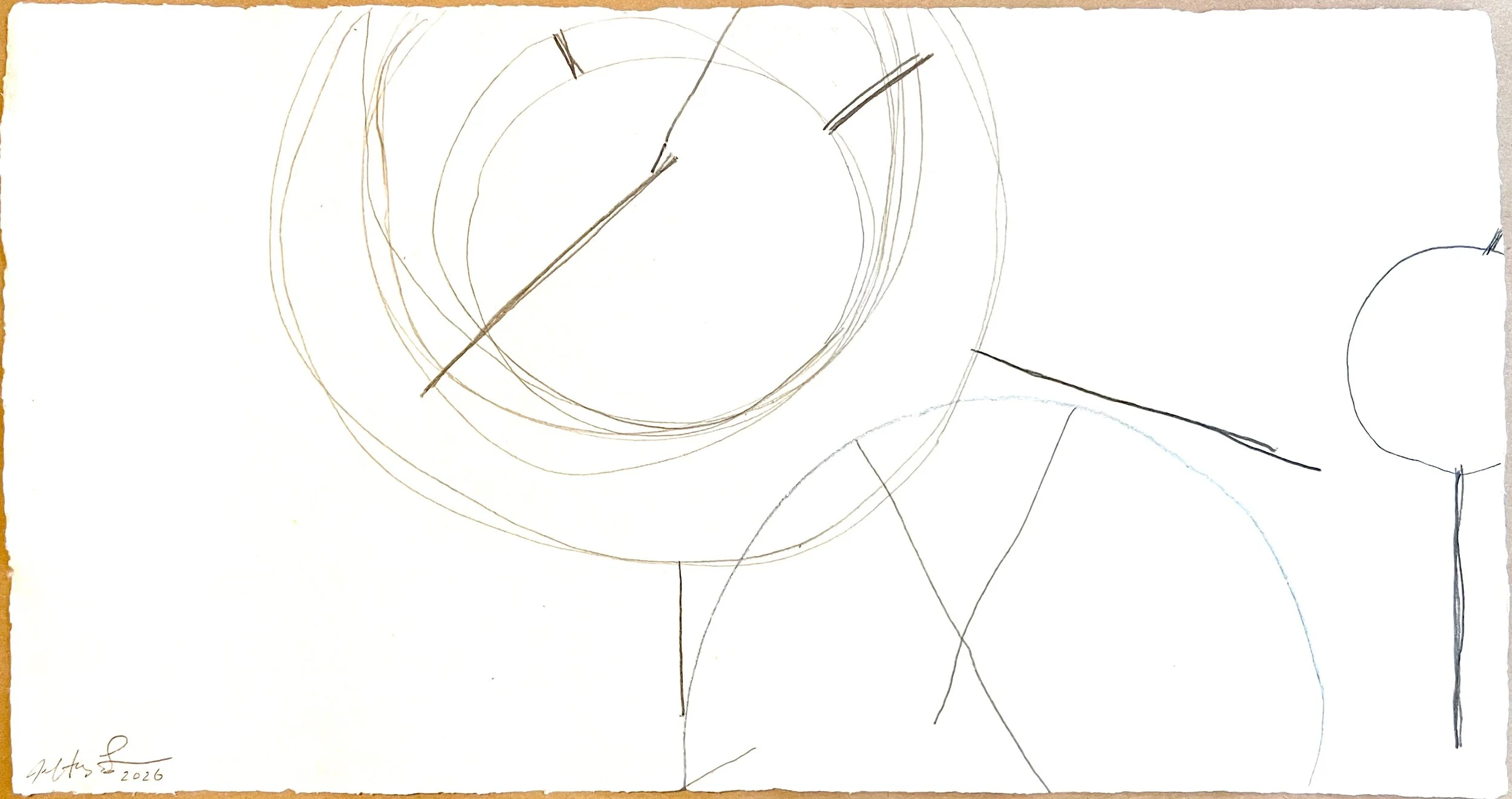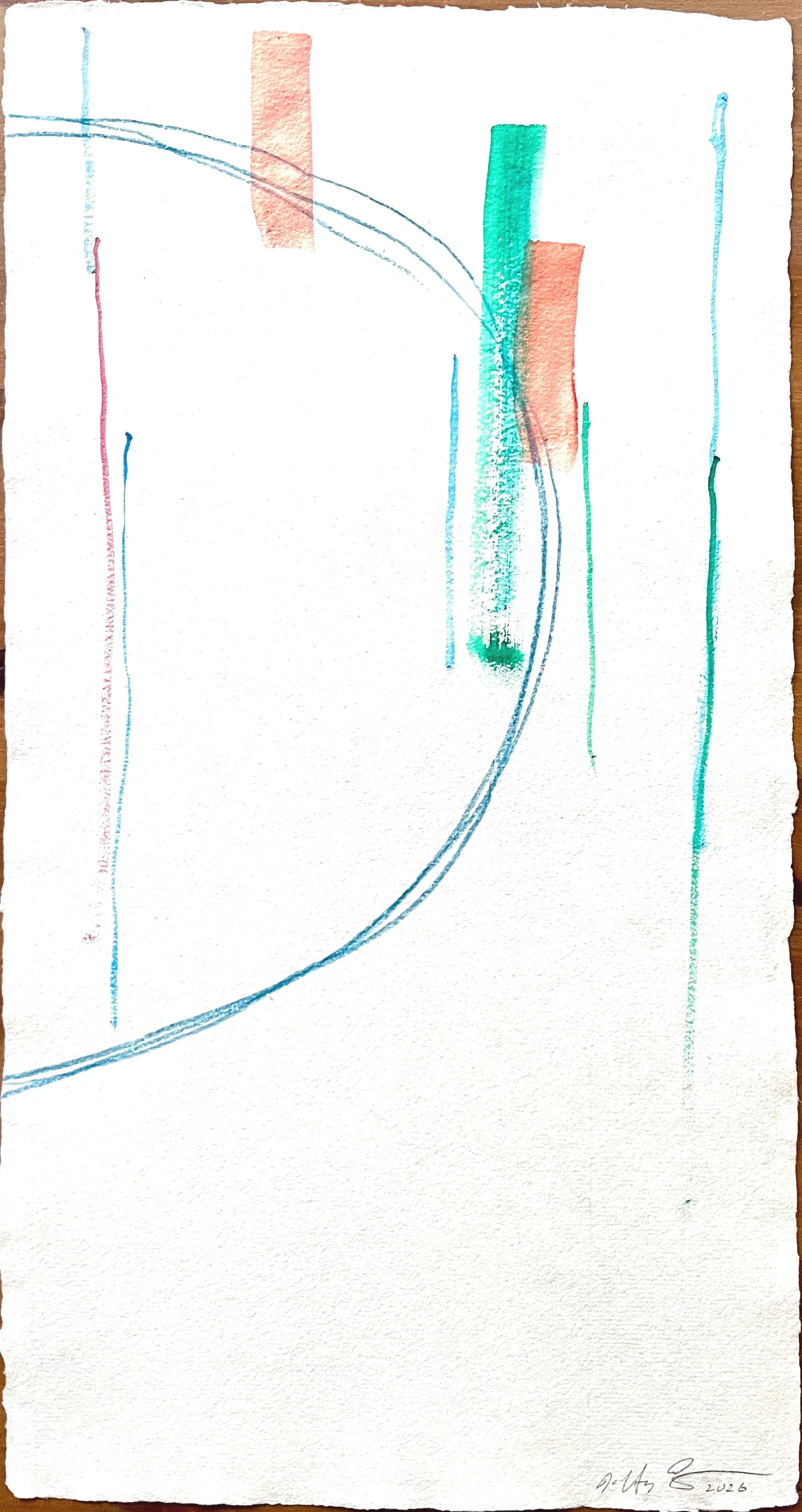 Trails 10” x 19” chance determined pencil and watercolor on paper 2026