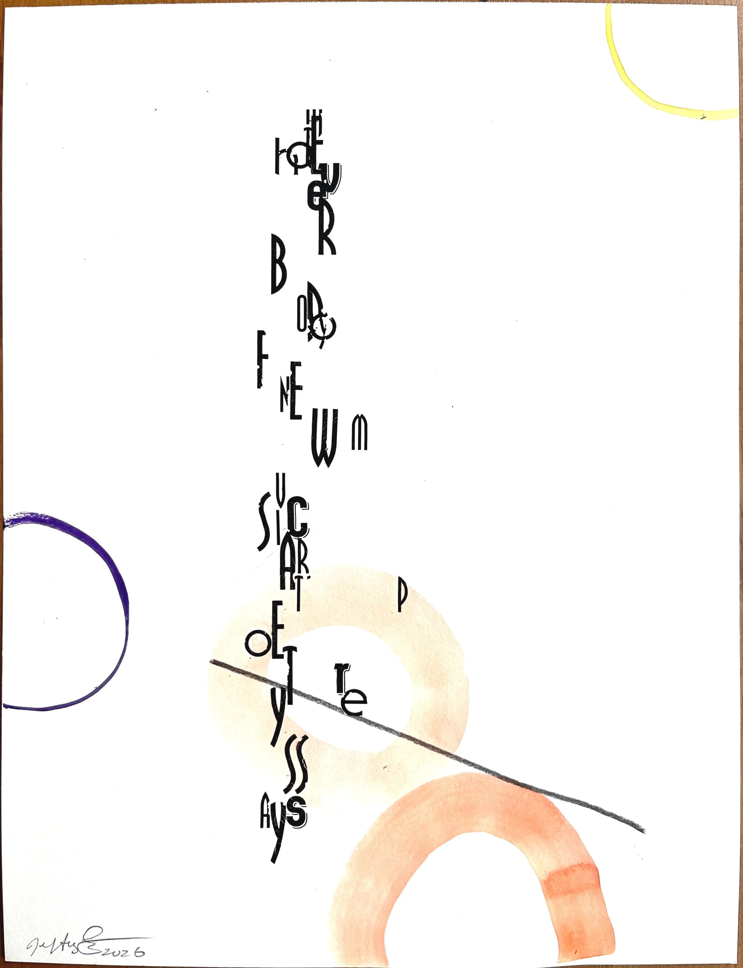Poetry as We Need It 9” x 12” pencil, watercolor and Letraset on paper 2026
